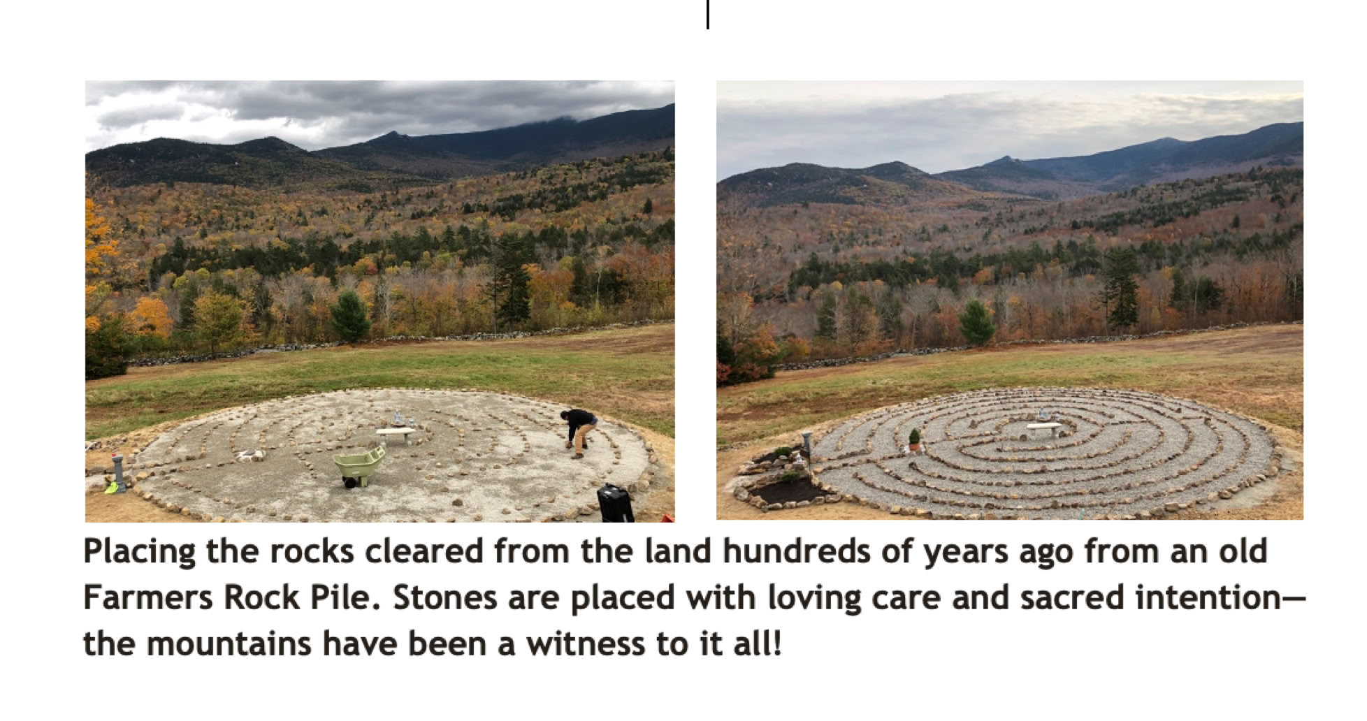 “If you’re looking for a way to meditate or pray that engages your body as well as your soul the labyrinth provides such a path. When you just want reflective time away from your busy life the labyrinth can offer you time out. The labyrinth holds up a mirror, reflecting back to us not only the light of our finest selves, but also whatever restrains us from shining forth. When struggling with grief, anger, a challenge or illness, walking the labyrinth can point the way to healing and wholeness..”